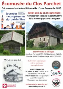 À l’occasion des Journées Européennes du Patrimoine 2025 sur le thème du Patrimoine architectural, les Amis de la Ferme de l’écomusée du Clos Parchet vous invitent à cette après-midi de visites et d’échanges sur la composition spatiale et constructive de la maison paysanne savoyarde.